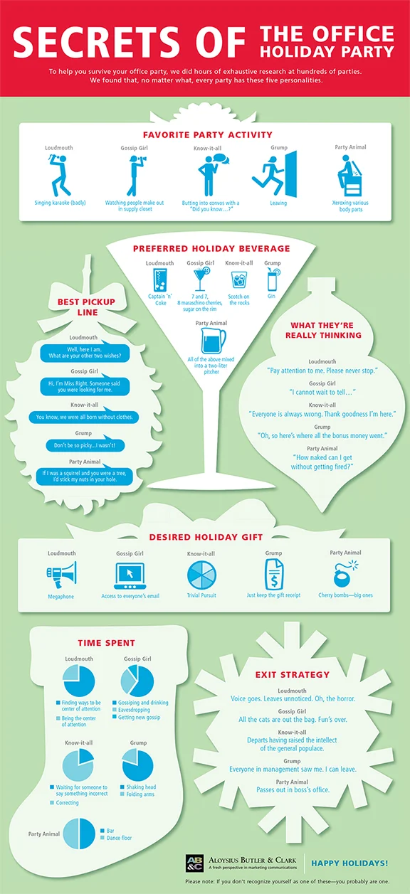 These were sent to current clients and prospects to celebrate the holidays. It's an irreverent look at the ubiquitous "office holiday party." This won a Philly ADDY gold.