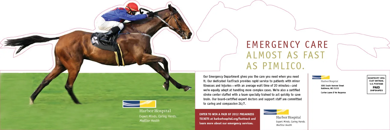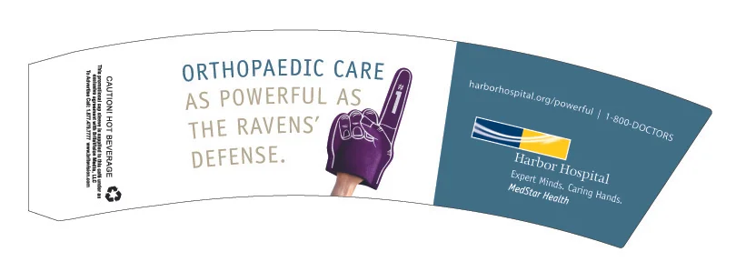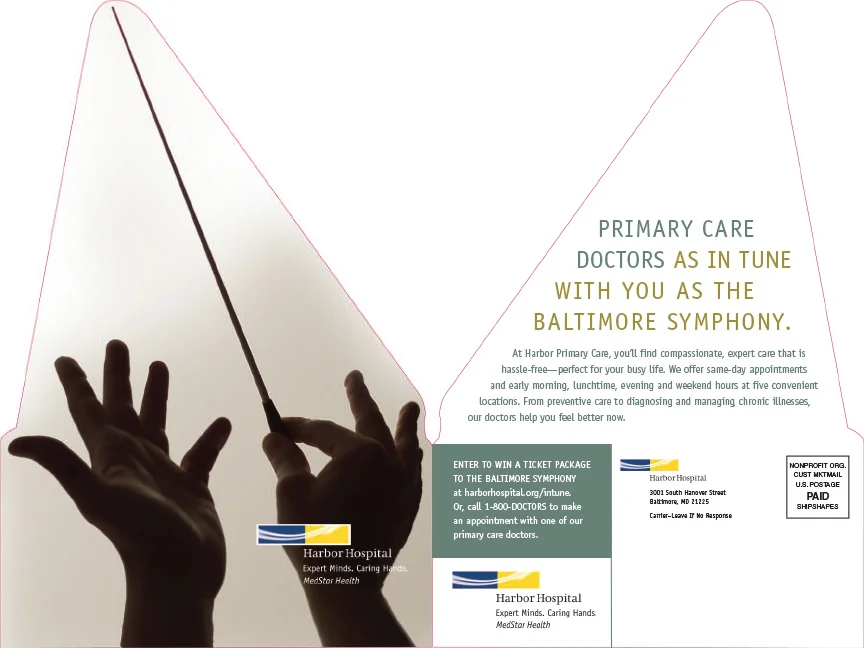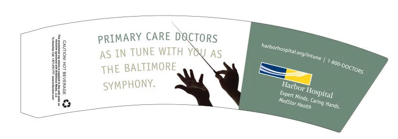 Harbor Hospital wanted to establish themselves as one of the top hospitals in the highly competitive Baltimore market. This campaign included print ads, animated online ads, custom diecut direct mailers, coffee sleeves and billboards.